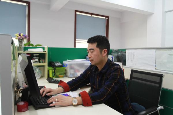鄺野在電腦前認(rèn)真梳理客戶信息