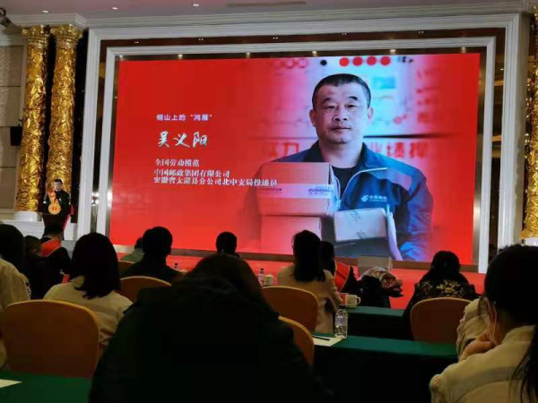 12月23日,由省委宣傳部、省總工會(huì)主辦,安慶市委宣傳部、安慶市總工會(huì)承辦的安徽省學(xué)習(xí)宣傳全國(guó)勞動(dòng)模范和先進(jìn)工作者表彰大會(huì)精神勞模宣講團(tuán)安慶宣講會(huì)在安慶碧桂園大酒店隆重舉行,全國(guó)勞模模范—太湖縣北中支局投遞員吳義陽作為四名受邀勞模之一參加了宣講。