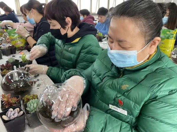 老師細(xì)心的解釋著每一株多肉的習(xí)性, 耐心的為女職工們講解每一個(gè)步驟。大家圍坐一起,在老師的講解和指導(dǎo)下,手持小工具饒有趣味地制作起來(lái)。剖土、栽種、鋪石、裝飾……每個(gè)人都樂在其中。女職工們自己動(dòng)手,打造出了自己的專屬微景觀盆栽,千姿百態(tài)、各有千秋,并且在美的感受中凈化心靈,得到了身心的放松,為接下來(lái)的工作注入了更多新鮮的力量。(北京郵政工會(huì))