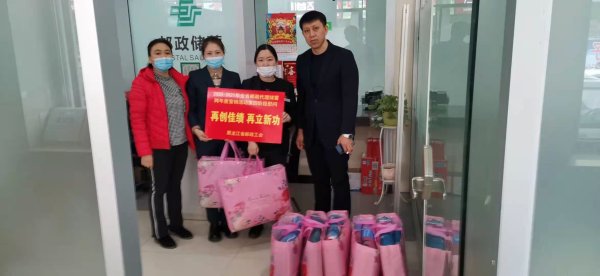 3月26日,雞西市分公司工會(huì)副主席袁寶和、雞東縣分公司工會(huì)主席葉天宇、虎林市分公司工會(huì)主席楊志峰分別帶隊(duì),代表省郵政工會(huì)進(jìn)行了慰問(wèn),為網(wǎng)點(diǎn)送去了夏涼被、大米、豆油等慰問(wèn)品,對(duì)獲得榮譽(yù)的網(wǎng)點(diǎn)表示祝賀,并對(duì)網(wǎng)點(diǎn)全體職工在跨年度營(yíng)銷(xiāo)活動(dòng)中的辛苦付出表示感謝,同時(shí)鼓勵(lì)大家繼續(xù)保持良好的發(fā)展態(tài)勢(shì),再創(chuàng)佳績(jī),再立新功!