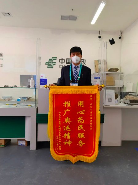 3月3日下午,延慶冬奧村臨時(shí)郵局尤志強(qiáng)收到了一位資深郵迷寄來(lái)的印有“用心為民服務(wù)、推廣奧運(yùn)精神”的錦旗,字里行間洋溢著對(duì)尤志強(qiáng)滿滿的感激和沉甸甸的信賴。