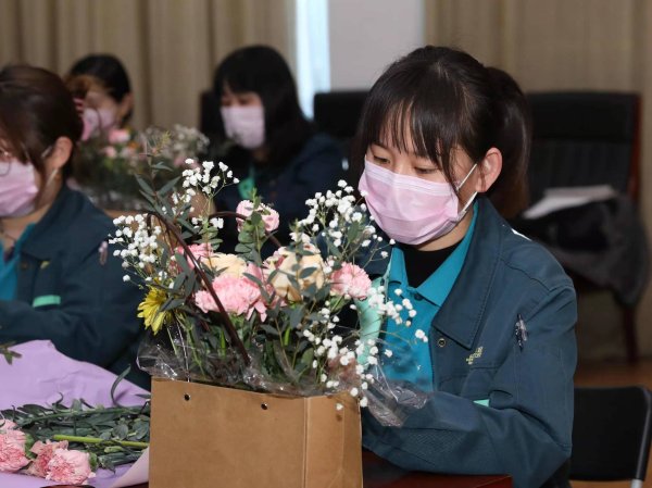 在三八節(jié)前一天,郵區(qū)中心還精心組織了“一次插花課程、一場健康講座、一份溫馨禮物”系列慶祝活動。3月7日上午,50位來自各處理中心和機(jī)關(guān)的女同胞們,在專業(yè)插花機(jī)構(gòu)講師的帶領(lǐng)下進(jìn)行了藝術(shù)插花活動,大家利用活動現(xiàn)場提供的鮮花材料和插花工具,在插花培訓(xùn)師的專業(yè)指導(dǎo)下按照喜好制作藝術(shù)插花作品,為自己量身定制了一份美麗的節(jié)日禮品,裝點(diǎn)美好生活。3月7日下午,邀請愛康國賓體檢中心健康專家,針對兩年來郵區(qū)中心女職工體檢結(jié)果,為女同胞們舉辦了一場“婦女節(jié)前話姐妹健康”知識的講座,大家在聆聽專家講解婦科和甲狀腺健康知識的同時,還就平時遇到的健康困擾與專家進(jìn)行了現(xiàn)場互動,氣氛熱烈。