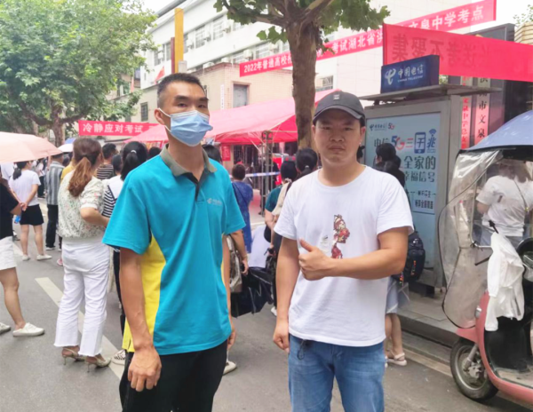 6月7日早上8時(shí)56分,距離2022年高考首場(chǎng)考試開(kāi)考僅剩4分鐘,在荊州市洪湖市文泉中學(xué)考點(diǎn),考生宋同學(xué)從洪湖市郵政分公司城區(qū)商投班班長(zhǎng)湯吉波手中接過(guò)身份證,轉(zhuǎn)身沖向了考場(chǎng)。一旁的警察和考生家長(zhǎng)們紛紛豎起大拇指,稱(chēng)贊郵政和湯吉波“靠譜”。