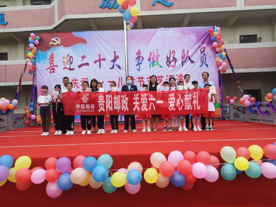 圖片說明:貴陽市郵政工會(huì)在鄉(xiāng)村小學(xué)開展“喜迎二十大、爭(zhēng)做好隊(duì)員”兒童節(jié)慰問活動(dòng)。