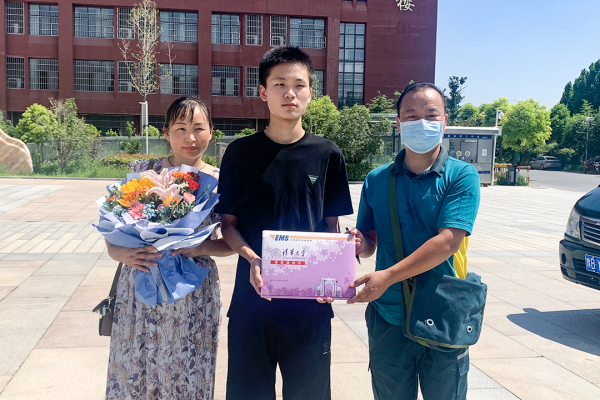 7月19日上午9點(diǎn),上蔡縣郵政分公司投遞員徐會超懷著激動的心情來到上蔡縣第一高級中學(xué),鄭重地把當(dāng)?shù)厥着迦A和北大的錄取通知書送到景子洋、王寧靜等7位學(xué)子手中。上蔡郵政還為7位學(xué)子精心準(zhǔn)備了鮮花和拉桿箱,向他們送去了郵政真摯的祝福。
