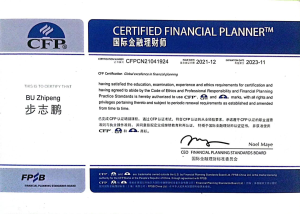 步志鵬畢業(yè)于武漢科技大學本科,自2019年參加郵政工作以來,他通過網(wǎng)課和線下等培訓(xùn)方式,先后考取了銀行從業(yè)、基金從業(yè)、證券從業(yè)、CHFP理財規(guī)劃師、CICE壽險規(guī)劃師、AFP金融理財師、CFP國際金融理財師等金融從業(yè)證書。