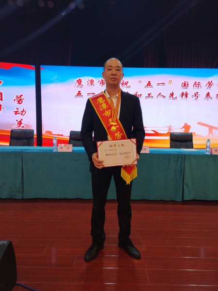 4月28日,江西省鷹潭市舉行慶?!拔逡弧眹?guó)際勞動(dòng)節(jié)暨“五一”勞動(dòng)獎(jiǎng)?wù)潞凸と讼蠕h號(hào)表彰大會(huì),貴溪市分公司員工江貴進(jìn)同志榮獲鷹潭市“五一”勞動(dòng)獎(jiǎng)?wù)隆?/p>
