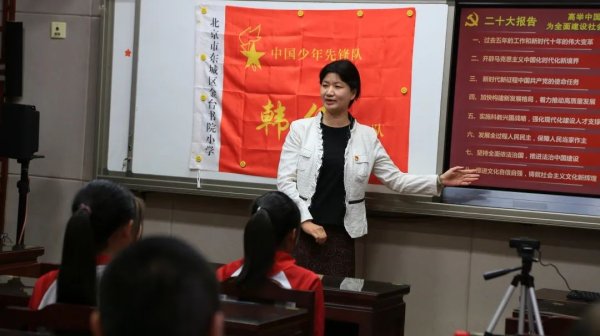 為迎接中國(guó)少年先鋒隊(duì)建隊(duì)74周年,10月9日,位于北京市東城區(qū)的金臺(tái)書(shū)院小學(xué)舉辦了一場(chǎng)名為“我和先鋒面對(duì)面”的主題隊(duì)會(huì)。正值第54個(gè)世界郵政日,西城區(qū)分公司和中南海郵政支局的全國(guó)勞動(dòng)模范韓偉為“韓偉英雄中隊(duì)”的孩子們,以及金臺(tái)書(shū)院的全體師生提供了建隊(duì)74周年的賀禮——《賞郵票 跟黨走》教育課程。 自2021年金臺(tái)書(shū)院小學(xué)成立“韓偉英雄中隊(duì)”以來(lái),韓偉多次來(lái)到金臺(tái)書(shū)院小學(xué),他就像孩子們的知心叔叔,用自身的工作經(jīng)歷和經(jīng)驗(yàn)與孩子們分享和交流,將“堅(jiān)持做好每一件平凡小事”的勞模工匠精神傳遞給孩子們,在他們心中播下“勞動(dòng)光榮”的種子。 “韓偉英雄中隊(duì)”的同學(xué)們深入了解和學(xué)習(xí)韓偉叔叔的事跡后,深刻感受到堅(jiān)持原則的重要性。因此,隊(duì)員們都積極地去踐行和設(shè)定個(gè)人的小目標(biāo),自覺(jué)培養(yǎng)自律的良好習(xí)慣,并通過(guò)實(shí)際行動(dòng)展示要像韓偉叔叔一樣把每一件看似平凡的小事都做到最好的決心?!绊n偉英雄中隊(duì)”曾多次獲得東城區(qū)少先隊(duì)優(yōu)秀中隊(duì)、北京市星級(jí)優(yōu)秀中隊(duì),以及全國(guó)紅領(lǐng)巾中隊(duì)的榮譽(yù)稱號(hào)。