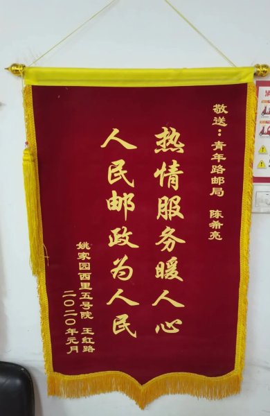 “還有一次,有一封來自國外的信件,信件收件地址只寫了姚家園西里5號院1號樓,無聯(lián)系電話。我挨家挨戶去詢問,終于找到王先生??吹接脩裟玫叫艜r高興的表情,我感覺所有辛苦都值得。用戶王先生激動的拉著我的手說:太謝謝你了,這封信對我很重要,沒寫電話我以為收不到了,你們郵政投遞員真的很負(fù)責(zé)任。王先生也送過一面錦旗到投遞部,表揚我細(xì)致、周到、耐心的服務(wù)?!标愊A琳f。
