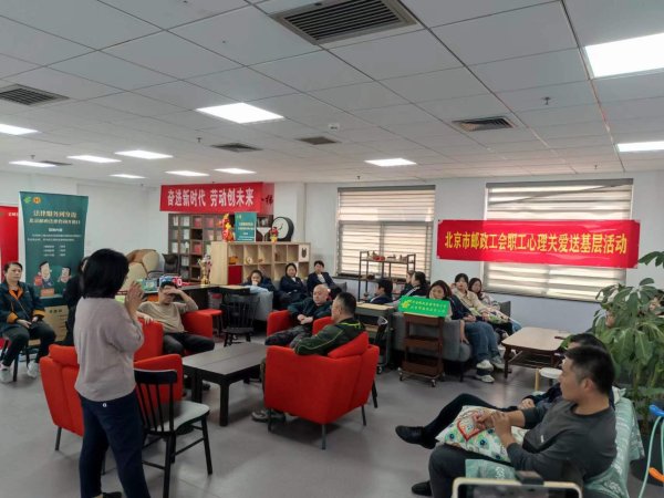 為了幫助廣大職工提升心理健康意識(shí),積極挖掘自身潛能,提升工作幸福感受,海淀區(qū)分公司按照市分公司2024年郵政員工心理健康關(guān)愛送基層活動(dòng)安排,于4月9日在職工之家承接市總工會(huì)“心理關(guān)愛勞動(dòng)者,健康工作50年:遇見更好的自己”專題心理團(tuán)體輔導(dǎo)活動(dòng),開展了“放松身心,助眠體驗(yàn)”心理團(tuán)體活動(dòng),以促進(jìn)員工身心健康全面發(fā)展,活動(dòng)共30名員工參加。