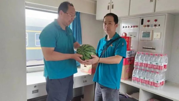 由于本次汛情范圍廣、時(shí)間長,火車押運(yùn)班立刻提高了各郵路作業(yè)風(fēng)險(xiǎn)預(yù)判等級,特別加強(qiáng)了人身安全和郵件安全管控,并對防汛工作、特品郵件運(yùn)輸和押運(yùn)員生活保障進(jìn)行了安排部署。 張金棟執(zhí)乘組一行3人,按照路方的安排,隨列車走走停停,最終停靠在了距北京站20公里的北京通州站。該列車編組??吭谕ㄐ熊壍篮笸Kk?,兩側(cè)軌道過路列車不斷。按照路方規(guī)定,執(zhí)乘組不能自行下車到其他站臺或出站,郵政車廂內(nèi)也不能使用驅(qū)蚊用品。火車押運(yùn)班及時(shí)為執(zhí)乘組發(fā)放了“戰(zhàn)備糧”和瓶裝飲用水,還送上西瓜、藿香正氣水等防暑用品。