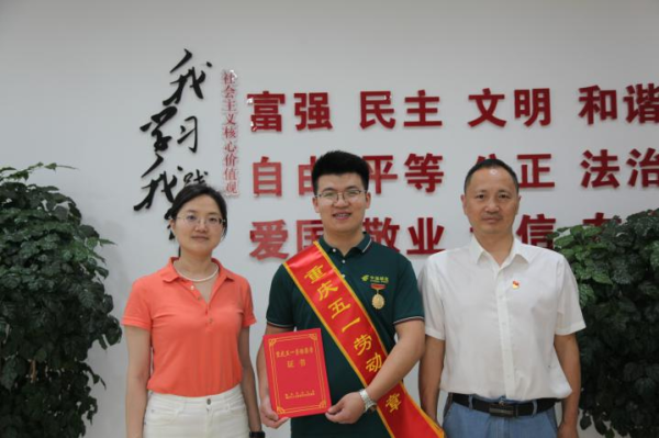 6月6日,江津區(qū)總工會副主席陳家燕來到江津郵政,為榮獲市“五一勞動獎”榮譽稱號的投遞員胡航頒發(fā)榮譽證書和“五一”勞動獎?wù)隆?/p>