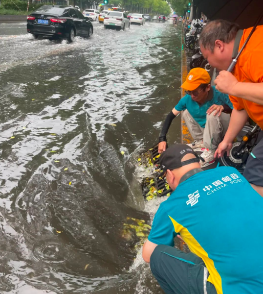 王洪生表示:“只要路上有積水,影響了行車(chē)安全,我們郵政班組成員就會(huì)立即行動(dòng),確保市民能夠安全順暢地出行?!保ū本┼]政工會(huì))